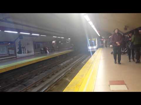 Entrada de tren serie tres mil fabricado por Construcción y Auxiliar de Ferrocarril y operado por Metro de Madrid en la estación de Ventas con destino a Cuatro Caminos y procedente de La Elipa es una línea de los primeras con composición de cuatro vagones en vez de seis.